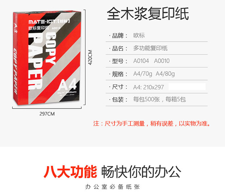 黃欣樂 70G A3 中白復(fù)印紙 500張/包 4包/箱